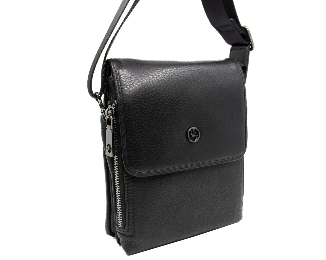Сумка через плечо H.T 2015-4 – практичный и стильный мужской аксессуар. С легкостью вместит все ценные вещи и документы. Изделие изготовлено из натуральной кожи черного цвета, обладающей повышенность прочностью и устойчивостью к износу. Обладает двумя вместительными внутренними отделами, закрывающимися на металлическую молнию. Купить представленную модель и другую кожгалантерею от Rembini можно прямо сейчас.